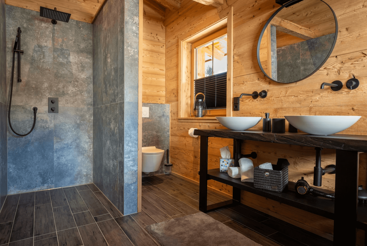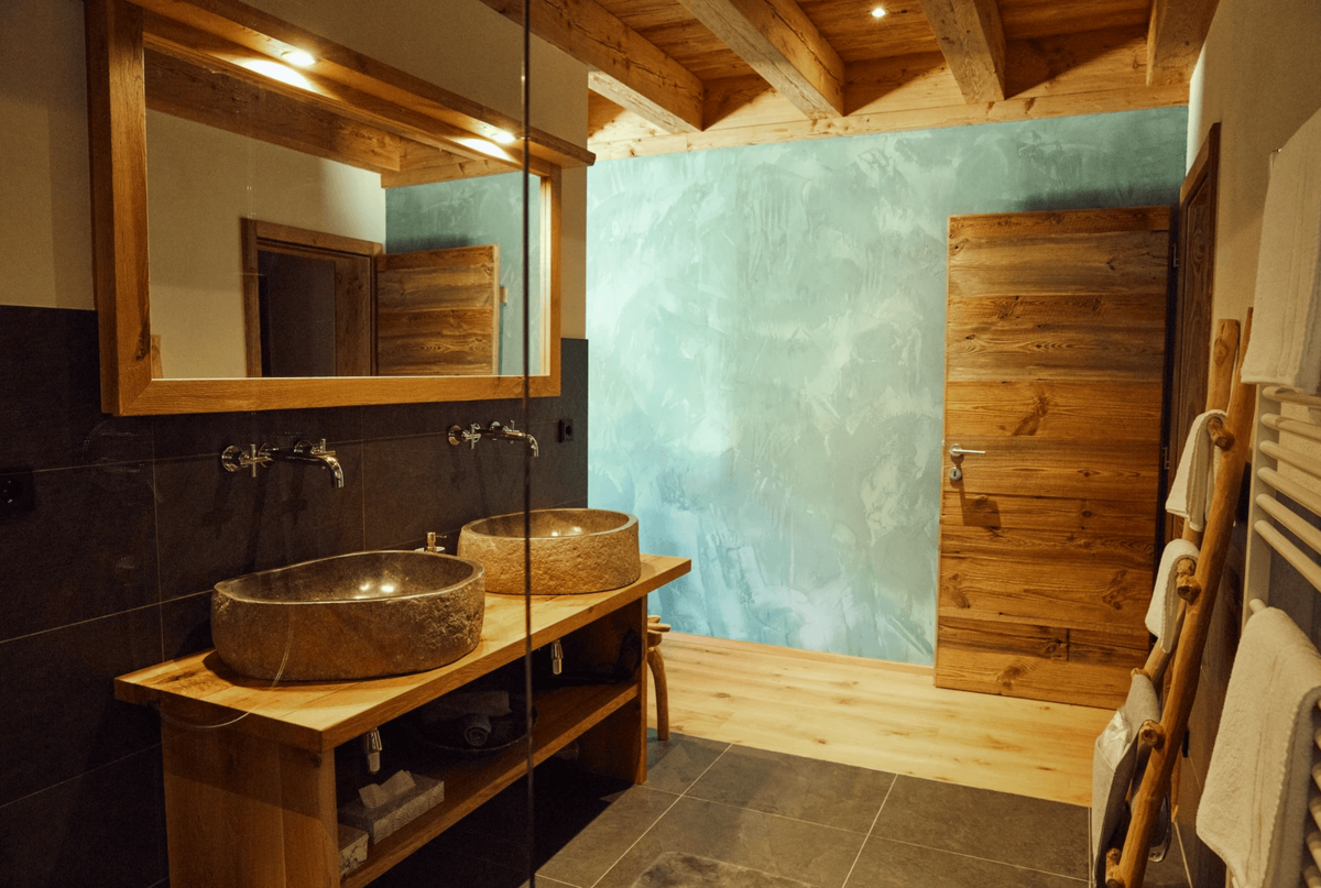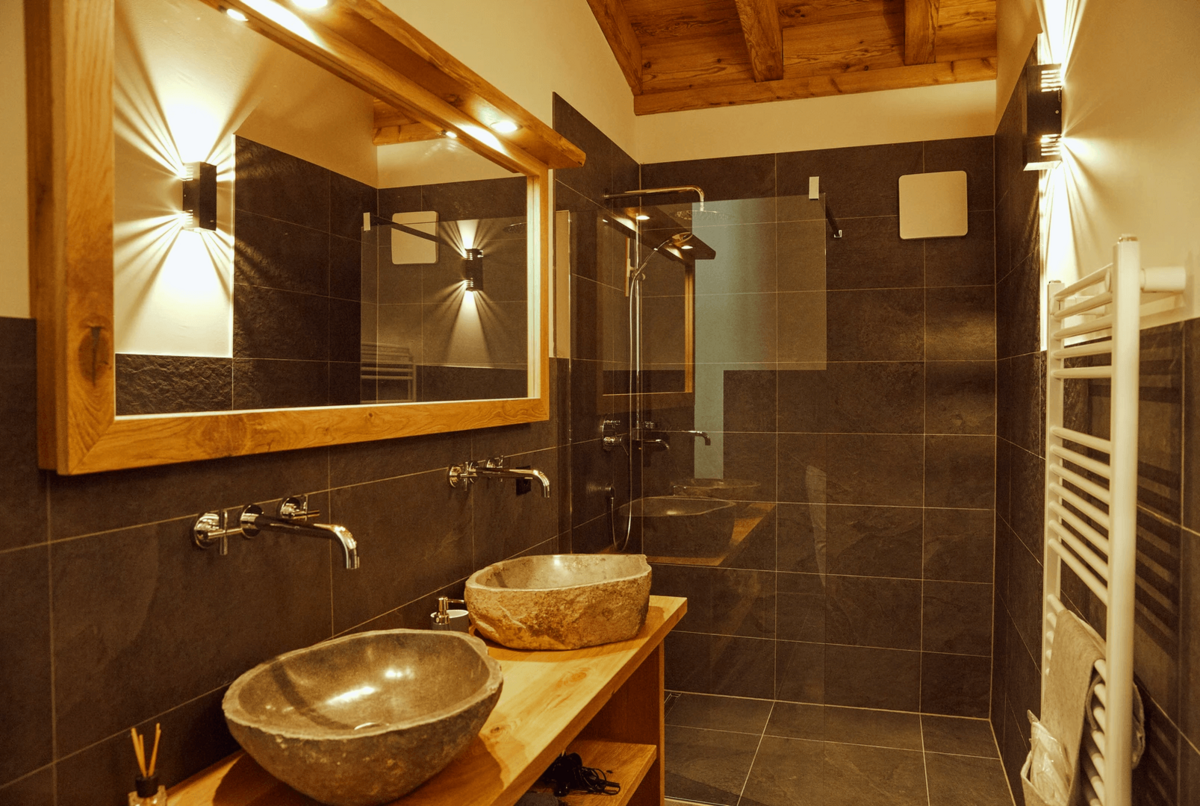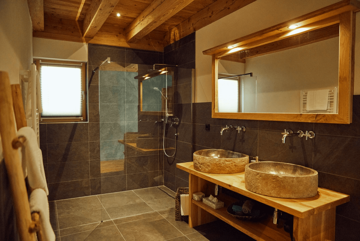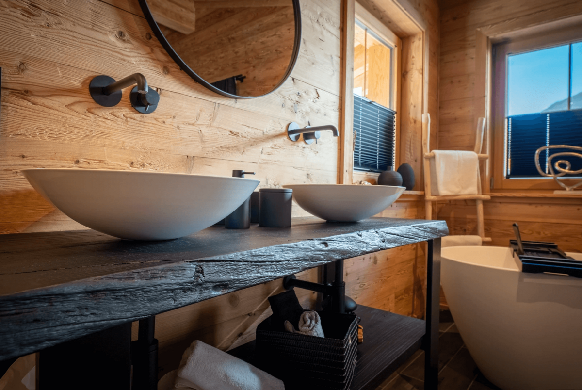 Die Chalets selbst beeindrucken durch ihre stilvolle Einrichtung und hochwertige Ausstattung. Natürliche Materialien wie Altholz und Naturstein schaffen eine gemütliche Atmosphäre, die durch moderne Designelemente ergänzt wird. Der offene Wohn-, Ess- und Kochbereich bietet einen atemberaubenden Blick auf die umliegende Bergwelt und lädt zu gemütlichen Abenden am Kamin ein.